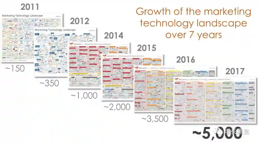 (图中密密麻麻的就是欧美市场中和Marketing有关的Saas工具,简称Mar-tech。2017年有5000多个产品,还只是统计了欧美市场的)