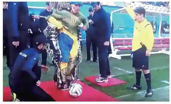 图2 2014年巴西世界杯足球赛开幕式上1位高位截瘫患者身着“机械战甲”开出第1球