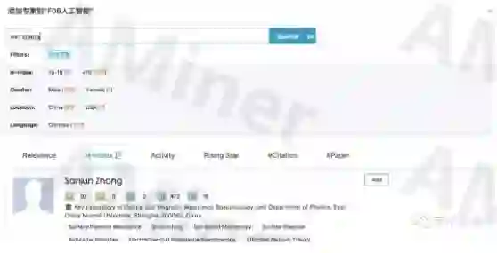 进入如下页面后,我们可以直接搜索想要添加的学者姓名,例如“san zhang”,点击“Add”进行添加。