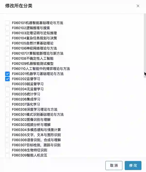 如果大家认为某位学者的分类有误,可以进行修改,并且可以勾选多个分类