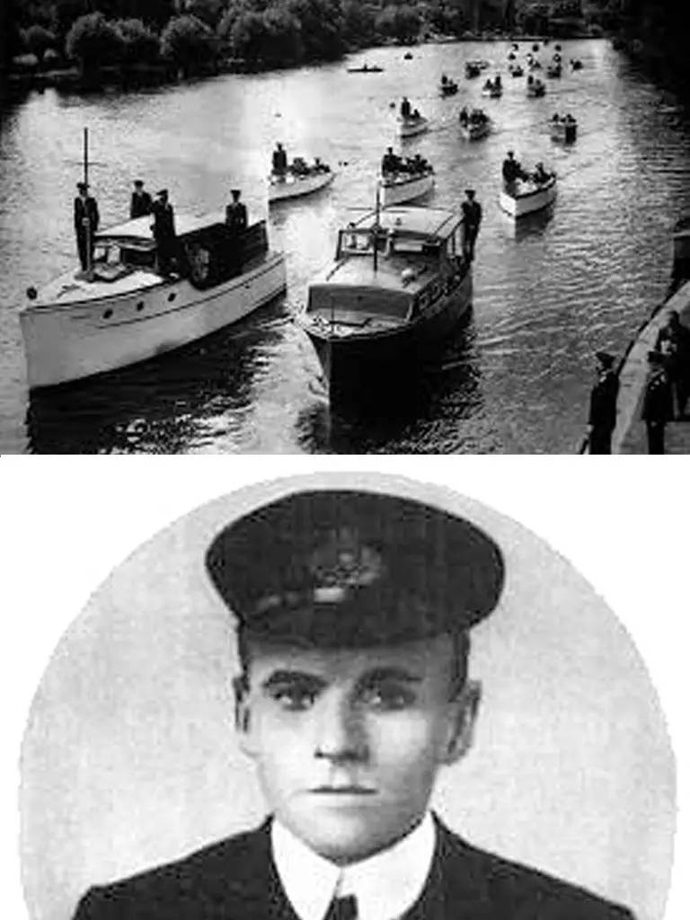 1940年5月14日,英国当局授命BBC向全国发布通告,号召境内凡拥有长度为30英尺到100英尺船只的民众在14天内上报船只具体细节,船只类型不限,无论渔船还是游艇均需上报备用。由于海军人手不足,大部分船只被征用后就如片中道森先生那样,直接由船主本人操舟到达敦刻尔克。最终,共有700余艘大小船只共襄义举,来往穿梭在沙滩和大舰船之间救人于水火,并留下了“敦刻尔克小船”的美誉。其中的一位老英雄颇为传奇,他是一个舰载艇的船长,叫做查理斯·莱特勒(Charles Lightoller),这位英雄是1912年泰坦尼克号的幸存者之一,并且曾在一战期间在驱逐舰上担当指挥官。