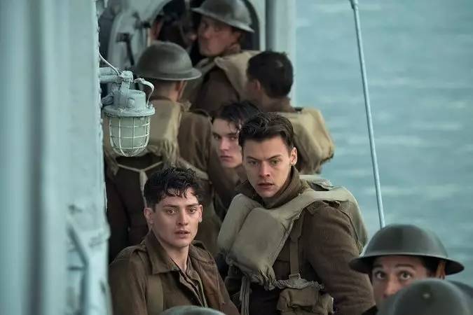 战争电影的标配一般是英勇的主角配角浴血奋战,一些具备畏难情绪的角色也只是衬托主角的绿叶,大多在最后能够战胜自己发光发热。而《敦刻尔克》开篇展示的就是一个士兵的恐慌张皇,继而从他的视角看到英军整体狼狈的众生相,并且贯穿始终。其中也有无畏和无私,但更多的是面临灭顶之灾时的恐慌和狼藉,见证者在后来耻于提及大难临头导致的纪律涣散和急于奔命,但是身当其境,逃命的念头并不可耻。于是如同《蝙蝠侠2:暗黑骑士》中考验人性的情节又一次被诺兰置换到战争的环境中,人们竞相挣命,不惜同袍之间弩张剑拔。