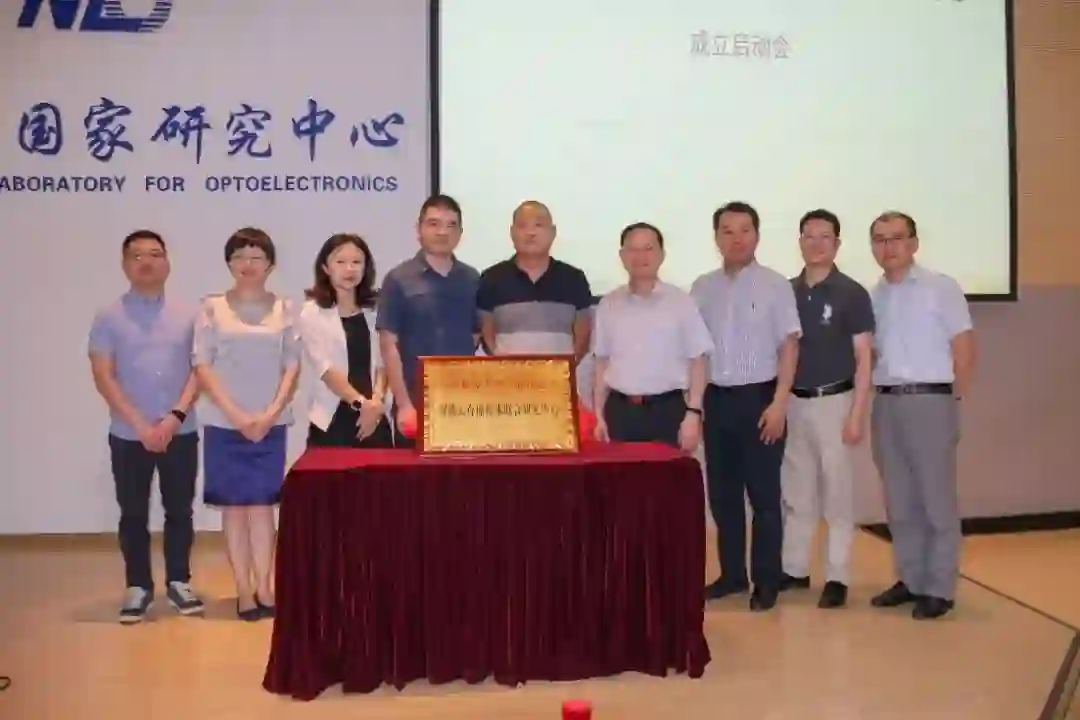 华中科技大学副校长骆清铭、腾讯公司副总裁王巨宏、腾讯公司基础架构部总经理肖志立、联合研究中心主任周可教授共同为研究中心揭牌。武汉光电国家研究中心党委书记夏松、腾讯公司产学合作高级总监刘婷婷、华中科技大学科发院副处长李江华、武汉光电国家研究中心副主任周军、武汉光电国家研究中心副主任朱丹、腾讯公司产学合作总监陈伟,以及武汉光电国家研究中心的老师和同学们共同见证了联合研究中心的成立。