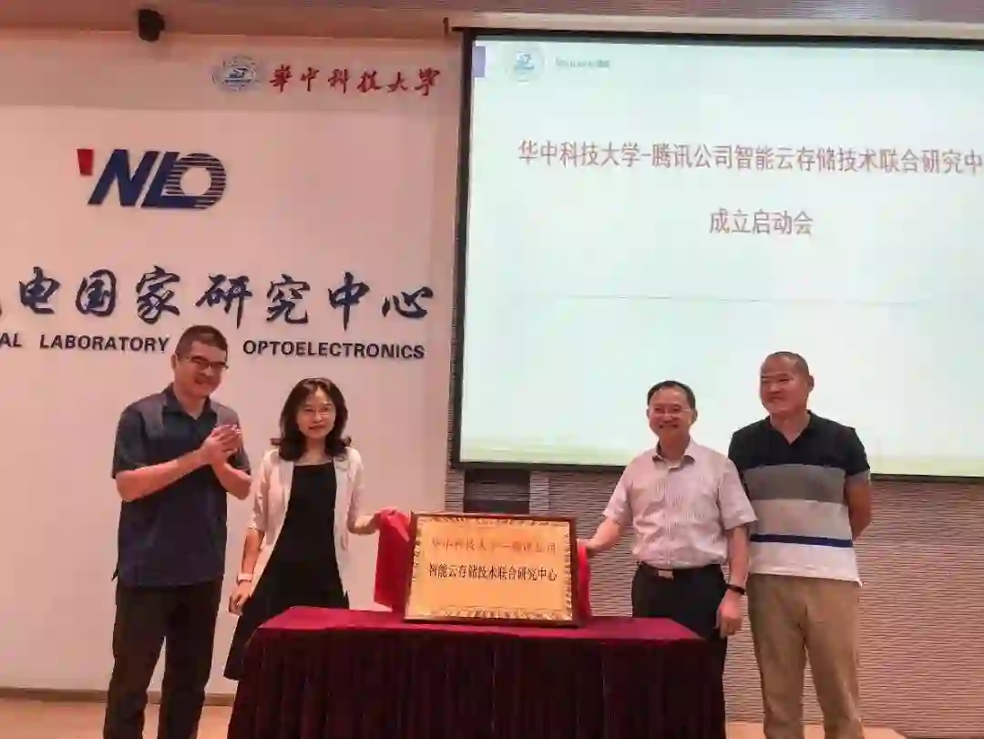 2018年6月11日,“华中科技大学-腾讯公司智能云存储技术联合研究中心”在华中科技大学武汉光电国家研究中心正式揭牌成立。云存储是互联网时代信息存储的一种重要形式,近年来其使用越来越普及,后台的数据存储量和系统规模也越来越大,如何使云存储系统高效可靠地运行成为当前面临的一个重要问题;人工智能技术能够克服传统技术在解决复杂问题时遇到的很多困难,将人工智能技术跟存储技术相结合成为当前云存储技术发展的重要趋势。华中科技大学在存储技术领域有着深厚积的积淀,腾讯公司拥有互联网海量数据存储的应用场景,联合研究中心旨在通过强强联合建设一流的智能云存储技术创新和人才培养平台,吸引汇聚顶尖专业人才,在分布式存储技术、高性能存储引擎、业务负载预测等方面开展联合技术攻关,突破超大规模云存储服务系统的诸多技术难题,以先进的技术为广大用户提供更优质的云存储服务。