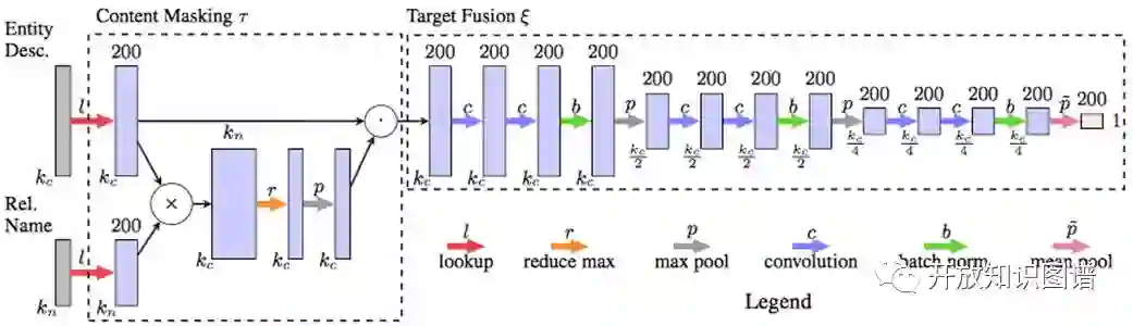 (2) Target fusion:从相关文本抽取目标实体的 embedding(用FCN即全卷积神经网络的方法);这个部分输入是masked content matrix,每层先有两个 1-D 卷积操作,再是sigmoid激活函数,然后是 batch normalization,最后是最大池化。