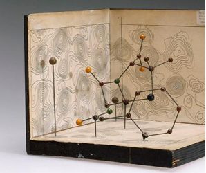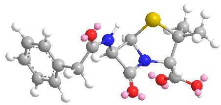 围绕青霉素的核心结构,当时顶尖的化学家们分为了两大派,一派以Robert Robinson(1947年诺贝尔化学奖得主)、John Cornforth(1975年诺贝尔化学奖得主)为主,他们认为青霉素的核心结构属于唑酮联噻唑环结构类型;另一派则以牛津团队中的Abraham、Chain以及美国Merck公司的化学家为主,他们认为青霉素的核心结构属于β-内酰胺并噻唑环结构类型。Robinson等化学家反对β-内酰胺结构的主要原因在于:β-内酰胺环是一个四元环,几何上要求环的内角都是90°,但是构成环的羰基碳原子正常的成键角度是120°,其他几个原子的正常成键角度都是109°,因此这个环的所有成环原子的键角都负向偏离了正常角度,相当于是被挤压着成环,具有明显的“张力”,所以不稳定。这一化学发展历史上著名的争议,最终被英国杰出的晶体化学家Dorothy Crowfoot Hodgkin(图5)于1945年通过X射线晶体衍射法确定了青霉素的三维晶体结构而解决(图6)。实验结果表明,青霉素的实际结构属于β-内酰胺并噻唑环的结构类型。回顾青霉素的整个发现过程,正是这一高活性的结构特点使青霉素在常见的分离条件下容易分解,因此,从1928年Fleming发现青霉素的活性开始直到20世纪40年代初,科学家才获得了足够进行生理活性研究和结构研究的纯青霉素。后续研究表明,青霉素对特定致病细菌的选择性抑制作用也来自于这一高活性的结构特点。