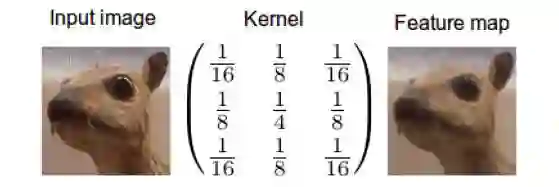 所以我们就得到了物理解释:卷积是信息的扩散。我们可以直接把这种解释运用到其他核上去,有时候我们需要先执行一个softmax正规化才能解释,但一般来讲核中的数字已经足够说明它想要干什么。比如说,你是否能推断下面这个核的的意图?