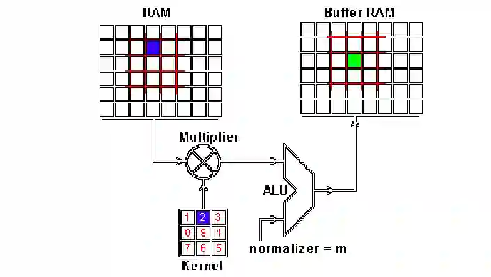 现在我们就可以从扩散的角度来理解图像上的卷积了。我们可以把卷积理解为两个扩散流程。首先,当像素亮度改变时(黑色到白色等)会发生扩散;然后某个区域的扩散满足卷积核对应的概率分布。这意味着卷积核正在处理的区域中的像素点必须按照这些概率来扩散。