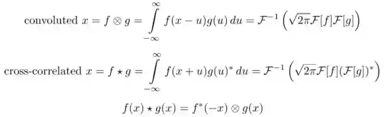 第一个等式是一维连续域上两个连续函数的卷积;第二个等式是二维离散域(图像)上的卷积。这里指的是卷积,指的是傅里叶变换,表示傅里叶逆变换,是一个正规化常量。这里的“离散”指的是数据由有限个变量构成(像素);一维指的是数据是一维的(时间),图像则是二维的,视频则是三维的。