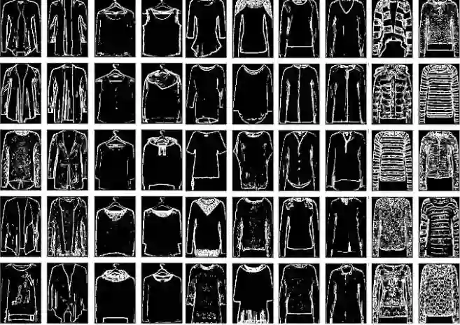 如果你想要区分衣服的式样,那么衣服的颜色就不那么重要了;另外像商标之类的细节也不那么重要。最重要的可能是衣服的外形。一般来讲,女装衬衫的形状与衬衣、夹克和裤子的外观非常不同。如果我们过滤掉这些多余的噪音,那我们的算法就不会因颜色、商标之类的细节分心了。我们可以通过卷积轻松地实现这项处理。
