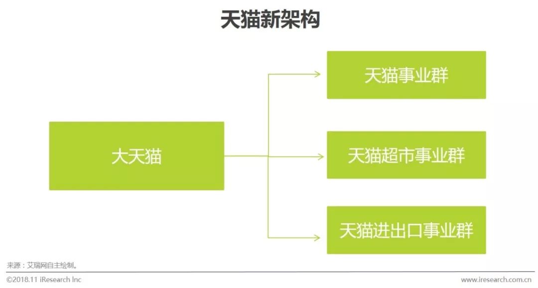 而在此次调整中,天猫将升级成为“大天猫”,形成天猫事业群、天猫超市事业群、天猫进出口事业部三大板块: