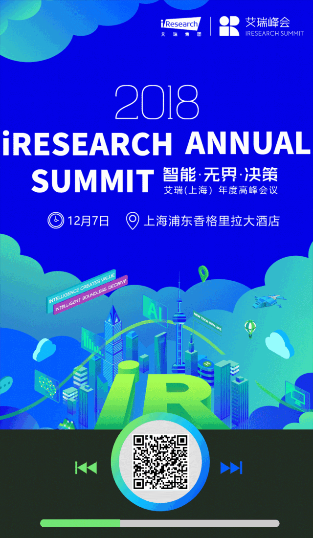 2018艾瑞(上海)年度高峰会议(12月7日)进入倒计时阶段,汇聚中国顶尖智慧“大脑”及实战型营销专家,透析智能科技下的中国新经济产业发展趋势及实践经验。最后400张峰会体验票限时免费申领,“码”上抢注!