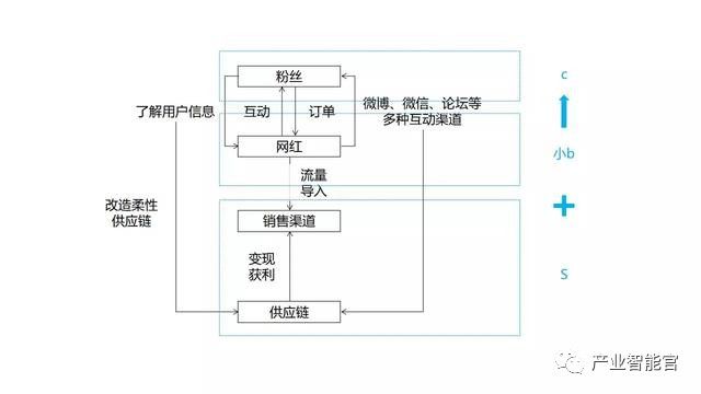 可以想象到,一件服装不同的人穿,带来的展示效果和销量都是有天壤之别,在这个过程当中,她可以为她的用户提供各种服务,比如为用户提供穿衣搭配的专业建议,然后将采集到的用户信息反馈给供应链,让供应链去进行优化、改革。S2b的本质是通过小b的创业需求和他们分享生活、提供服务并触及市场的方式去广泛采集c端消费数据,通过动态交互让供应链了解消费者,按照消费者的需求把自己改造成一个更加柔性,更加智慧的供应链。