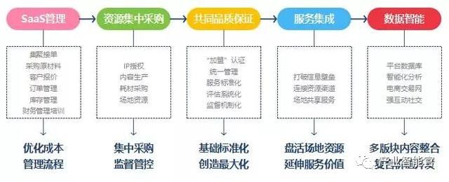 对S2b2c来说,赋能只是手段,其目的是通过赋能形成一个产业协同网络。这个协同网络是任何一个产业内的单体都做不到的。平台的价值就是这个协同网络的形成和底层架构者。只有突破传统加盟体系“交易”思维,从赋能的角度出发,S才能够和产业链上的各类小b共生共赢。S通过协同网络完成了产业乃至社会效率的提升,其盈利模式不从原来产业中的任何一个部分中来,只有这样才最终形成真正的共赢。
