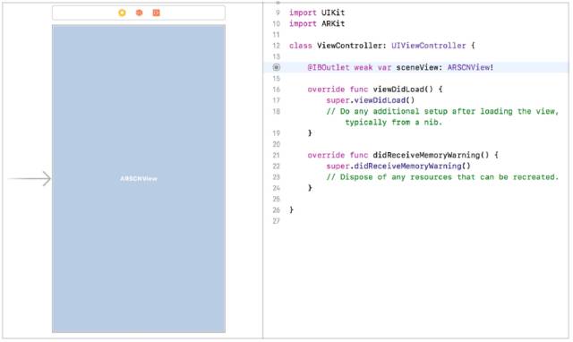 好的。现在是配置ARKit SceneKit视图的时候了。将以下代码插入到ViewController类中: