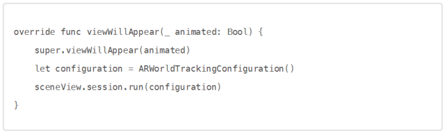 现在我们设置sceneView的AR会话来运行刚刚初始化的配置。AR会话管理视图内容的运动跟