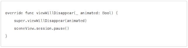 在该 viewWillDisappear(_: )方法中,我们只需告诉我们的AR会话,停止跟踪视图内容的运动和处理图像。