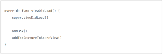 不用多说,让我们增加现实。我们要开始添加一个框。将以下代码插入到 ViewController中: