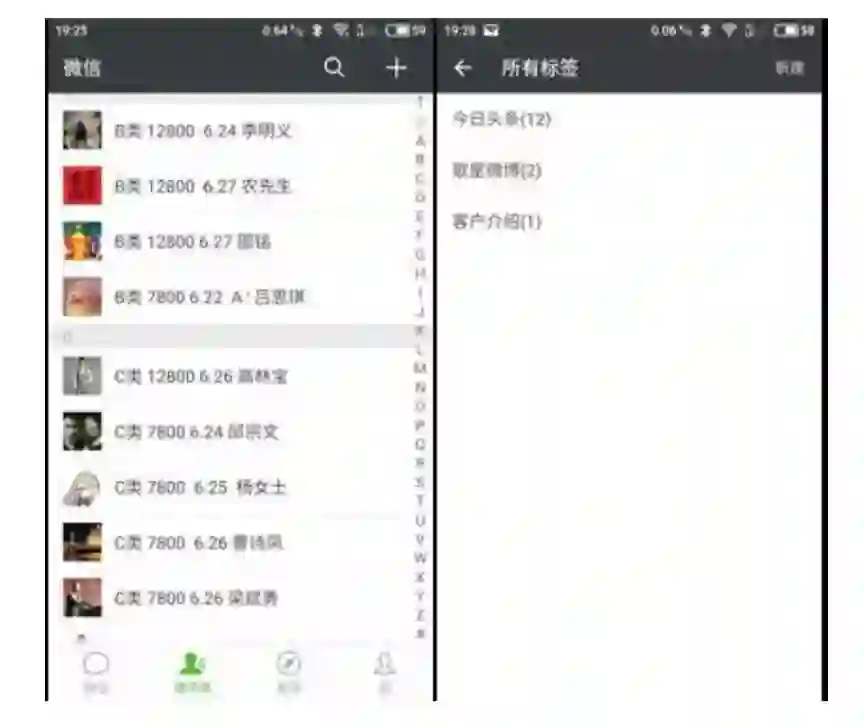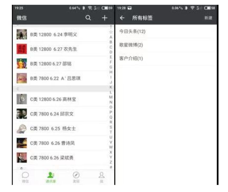 标签分层就是让你实现精准化运营的过程。下面是某微商手工一个个记录的,目前市面上可以也有像增小益这样个人号辅助工具可以实现自动打标签。