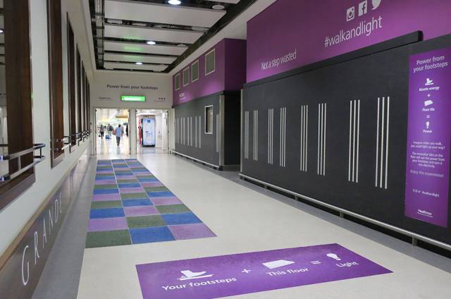 Pavegen电力及数据储存地砖能在客流高峰期储存大量的电力,减轻城市和企业的供电压力。