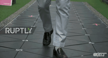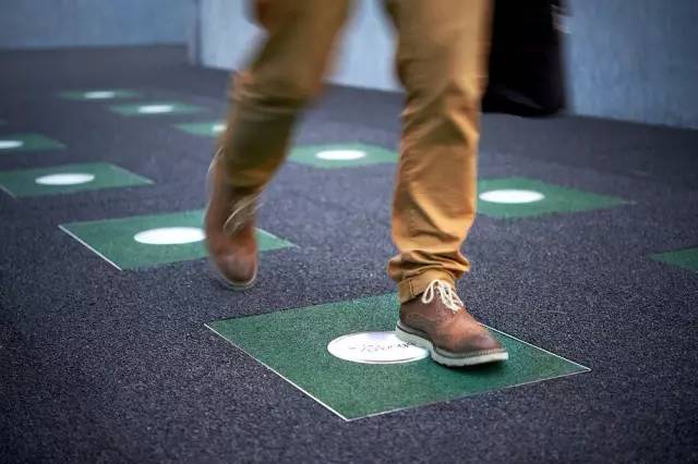 踩上去第一感觉就是“软”,但科技就藏在这些上下起伏的地砖之中,它能将践踏在它身上的每一步,精确转化为5W的能量。