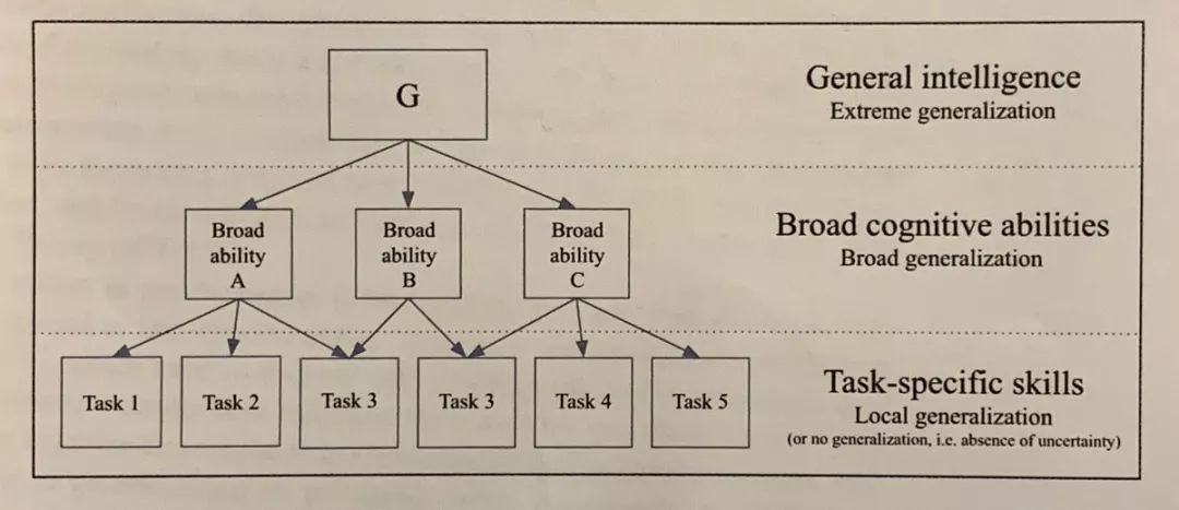 当人类接受不同的认知测试时,得到的结果是彼此相关的。这表明人类具有学习技能的基本元技能,即“g因子”(g-factor)。这些是Chollet认为评价AI需要衡量的能力,从Broad Generalization开始。
