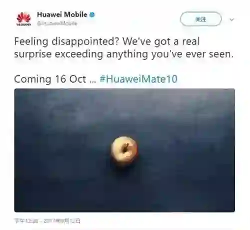 9月13日消息,苹果秋季新品发布会结束了,网友们对于三款iPhone新品有些失望。现在最新消息,华为官方在推特称,“Feeling disappointed?…Coming16Oct…HuaweiMate10”。