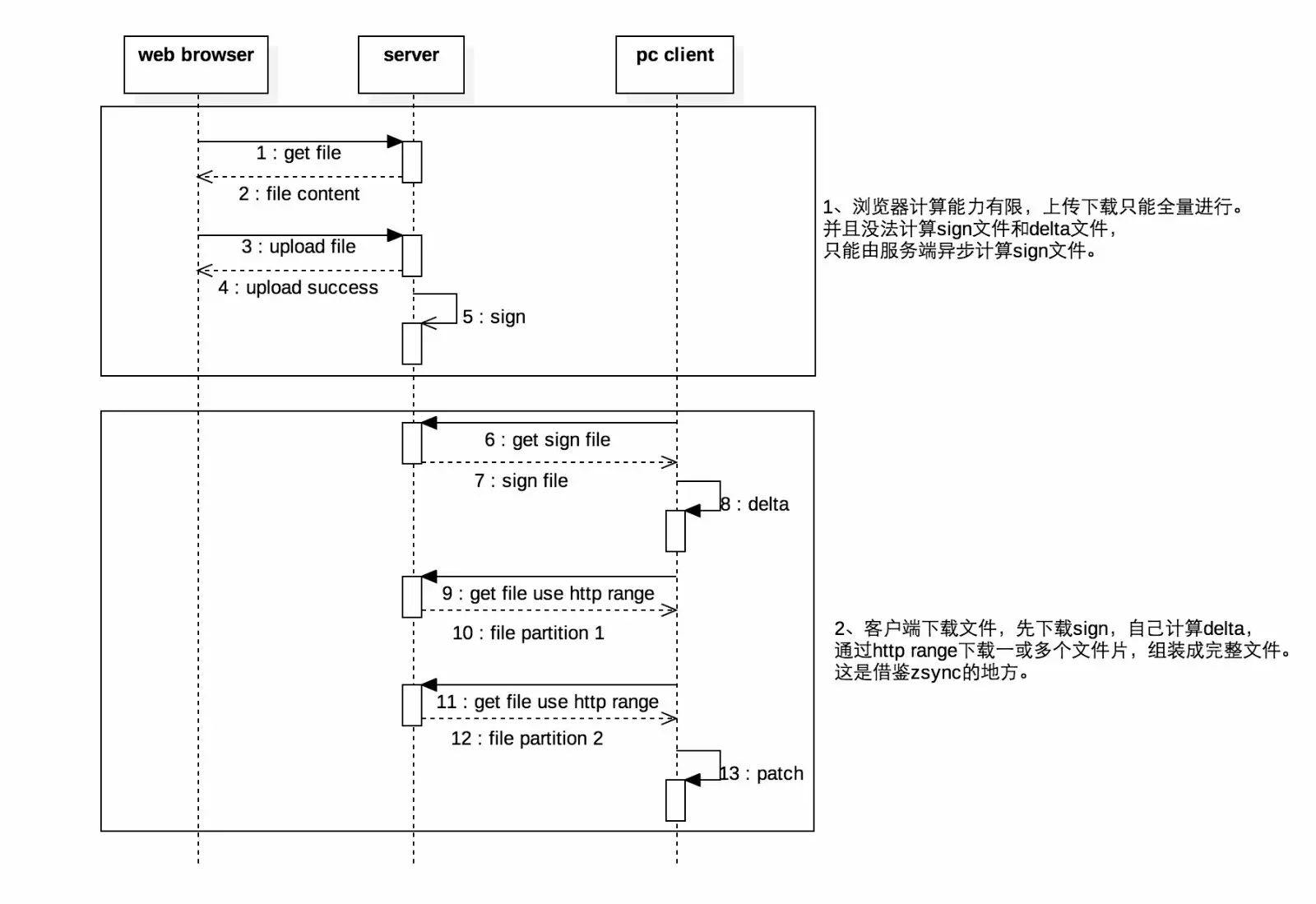 服务端需要存(一定量的)sign文件、delta文件;