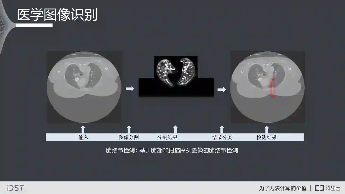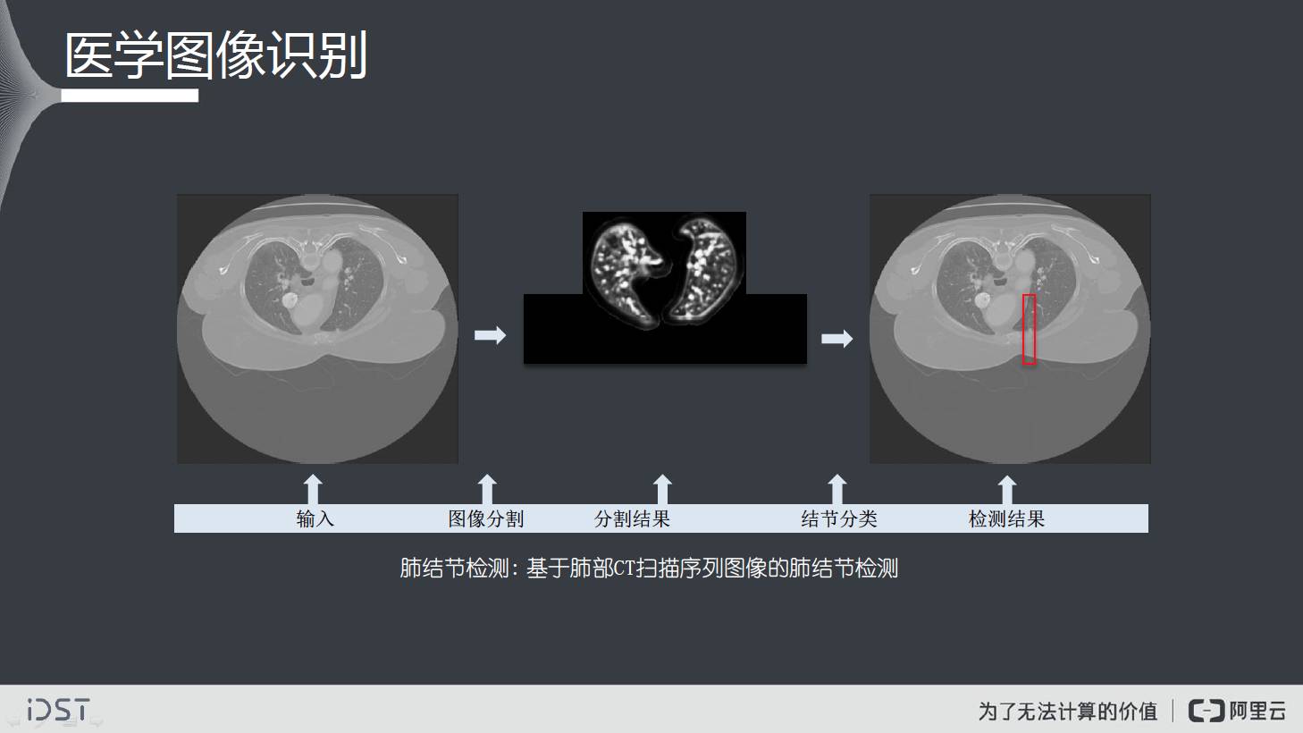 在医学图像识别中的CT结节识别,机器会比不那么资深的医生做的更好。当然在很多工业场景,比如像火车、隧道、煤矿、高压线等,凡是需要通过人眼或者摄像头来辨认的场景,都可以尝试用视觉计算的方法来解决。