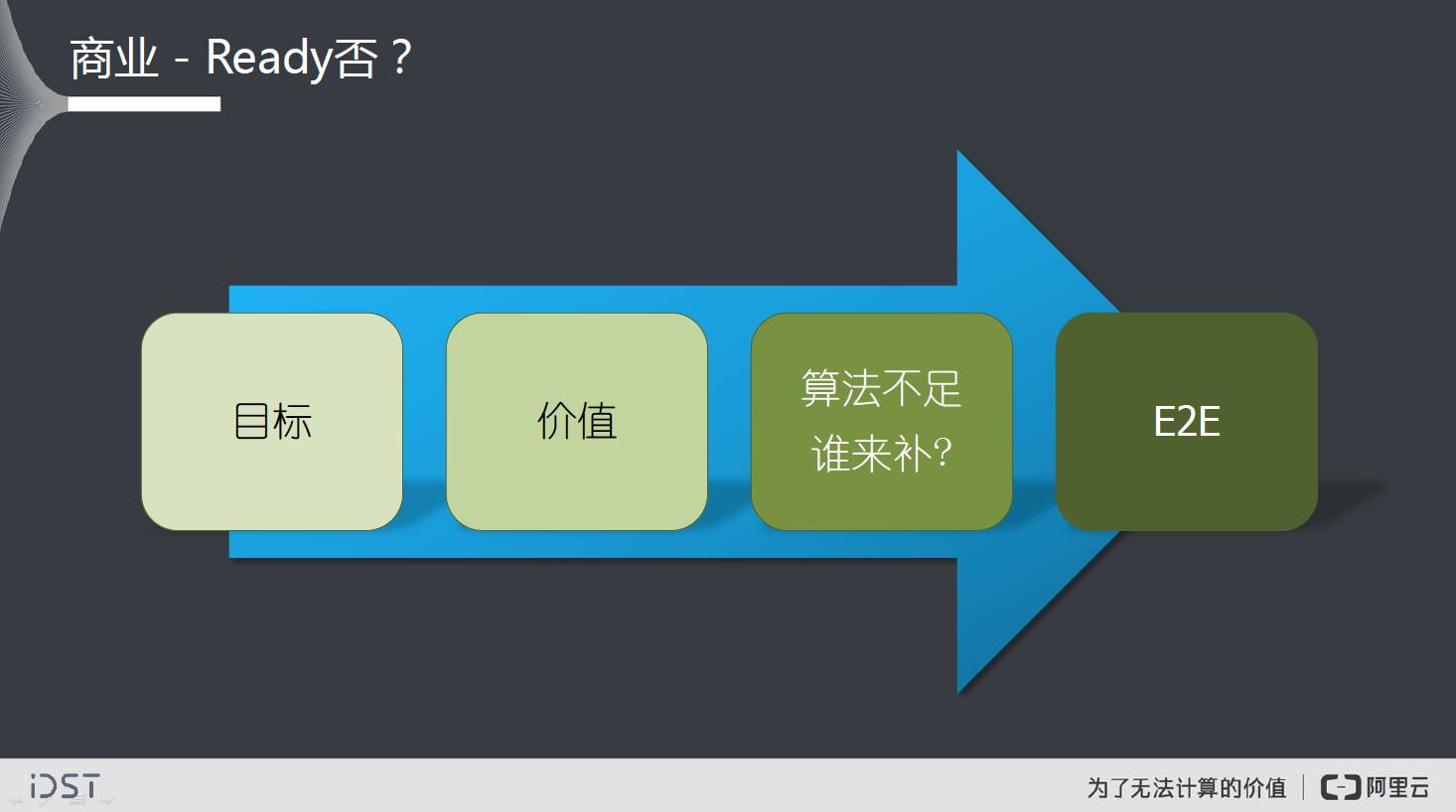 刚才提到,人工智能风生水起,视觉计算遍地开花。花是开了,但能不能结果呢?这里最关键的,是我们瞄准的是不是一个正确的问题,能不能给用户带来真正的价值。例如,是不是实现了人力的节省,性能的提升,成本的降低,或者成品率的增高和安全性的提升,等等。另外,算法不是万能的,总有它的局限,我们怎么用其它方式来弥补算法的不足,打通整个end to end的商业流程,这也是商业应用场景中要去关注和解决的问题。