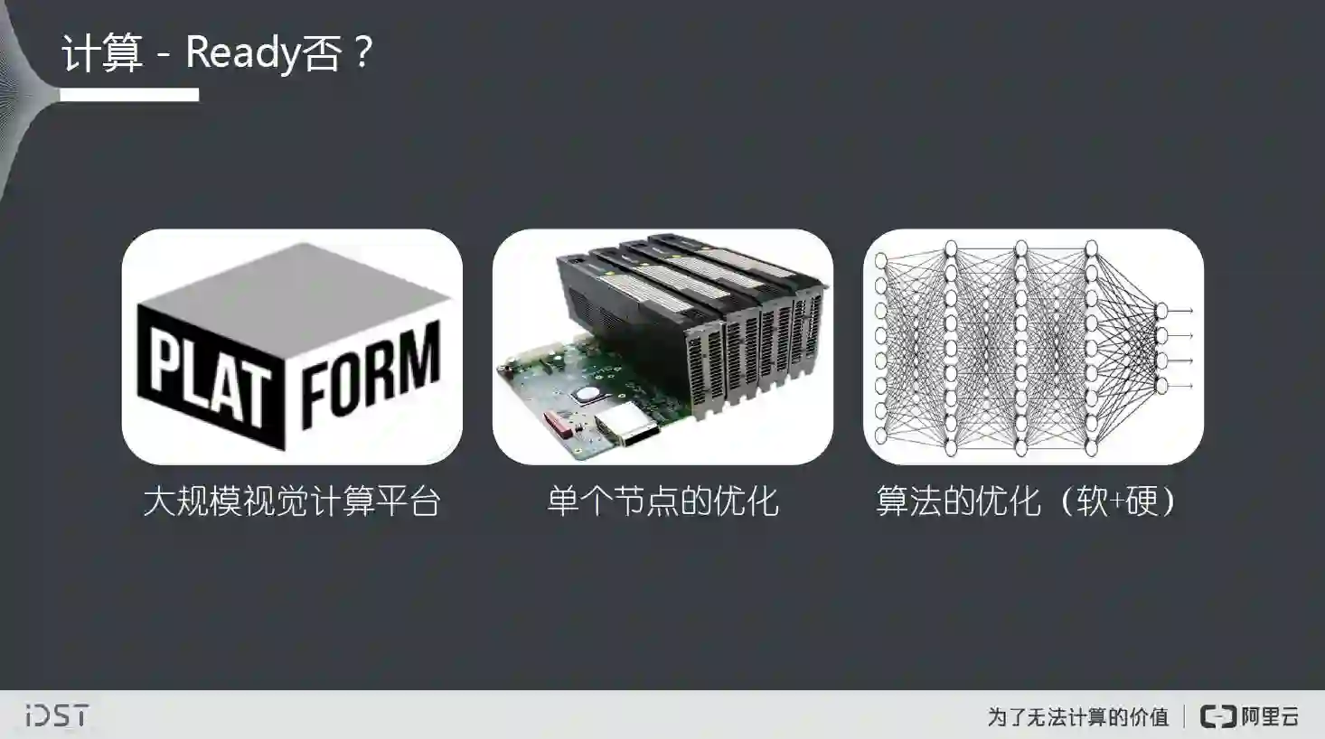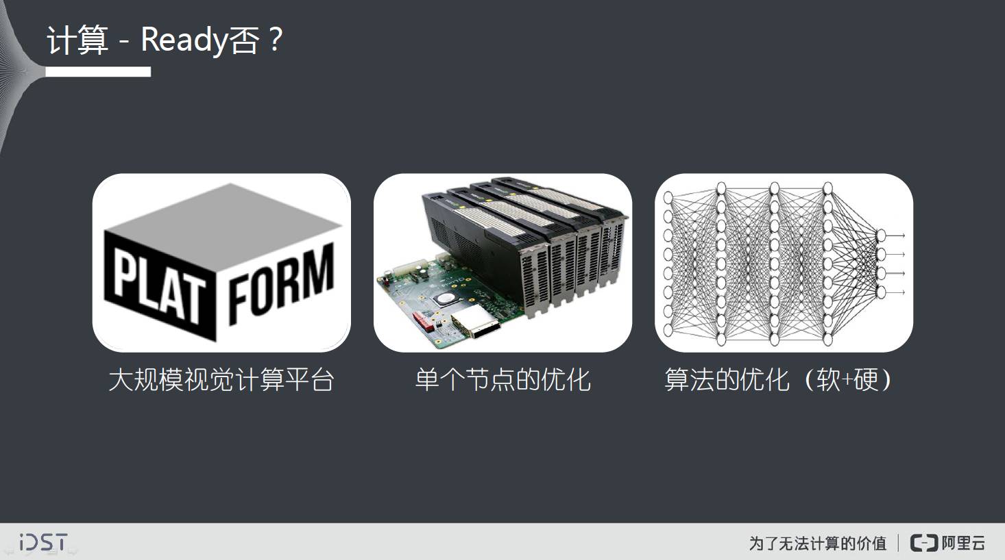 关于计算效率,当然还有其他方面。不仅是算法本身,还有大规模的计算平台,单个计算节点的优化,算法本身软、硬件上的优化。当然计算平台不仅需要好的性能,还有处理流程的流畅性、容错等。现在这些都算是有解的,但是不是非常高效的解,是值得商榷的。只有我们把效率发挥到极致,算法才能成为真正的核心竞争力。