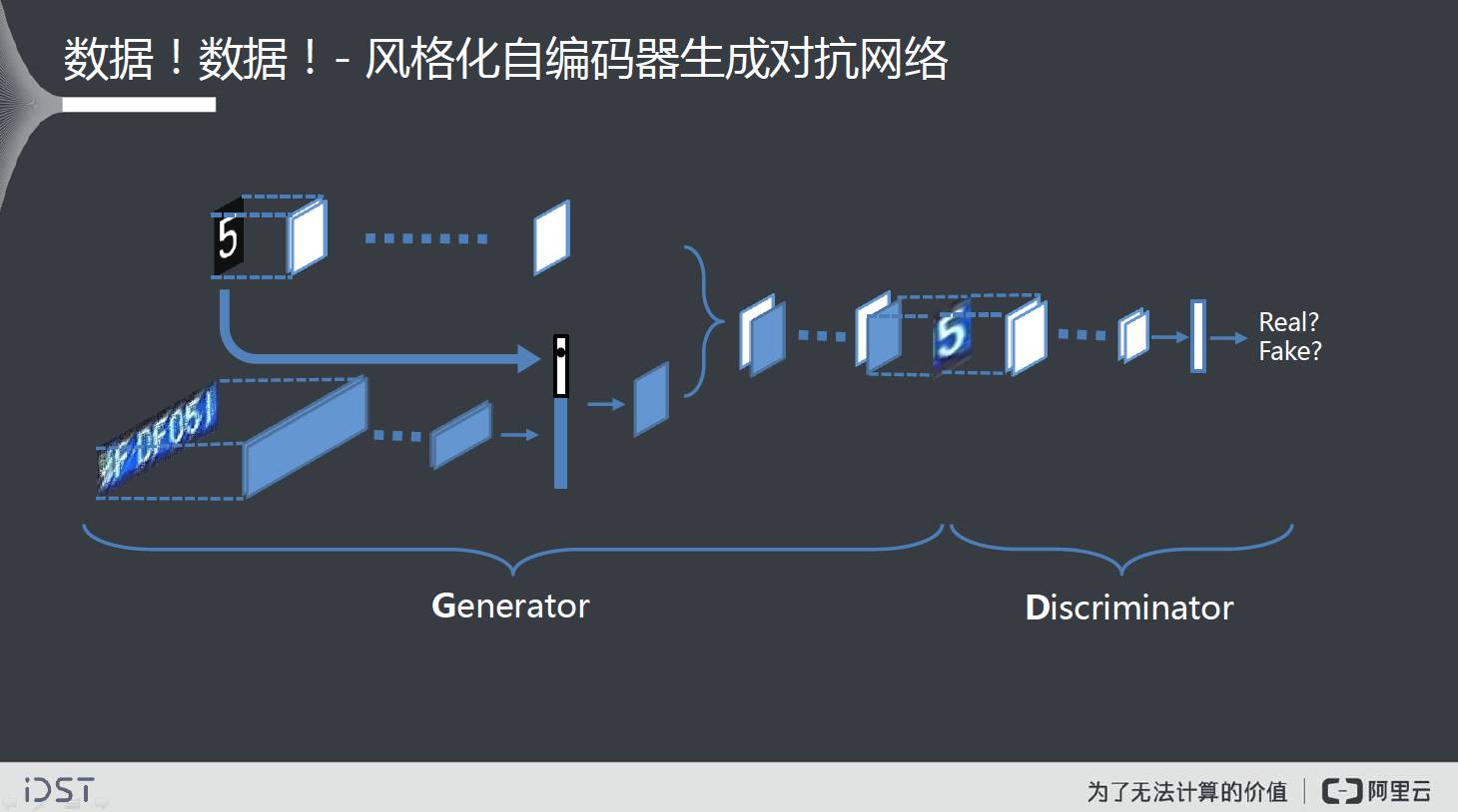 这里需要的有大家常用的技术,如检测、识别、搜索、挖掘,还有系统平台。还有一些算法,虽然对应的数据处理量很大,但是拿来做算法研发的数据不是很多,例如双层车牌、多层文字的路牌等,量很少。能否用很少的样本训练出更好的模型呢?有一种解决方案是,我们通过“风格化自编码器生成对抗网络”,通过一些算法合成的以假乱真的特殊车牌、路牌,使得算法识别率能够显著提升。