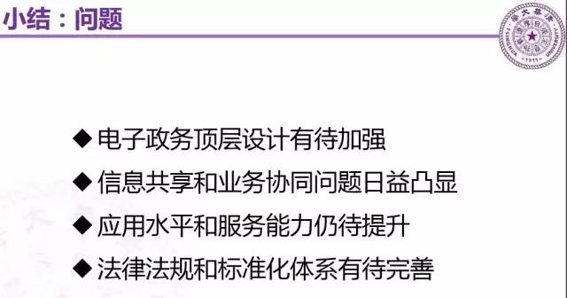 从我们的主管部门来讲,可能强调目标导向一步到位不太现实,更多的这一轮的电子政务的顶层架构可能还是解决突出的问题,所以强调问题导向。哪些问题呢?大家梳理一下: