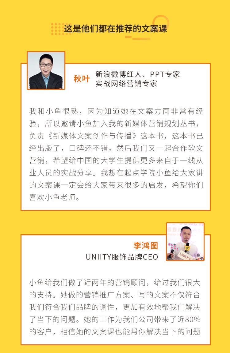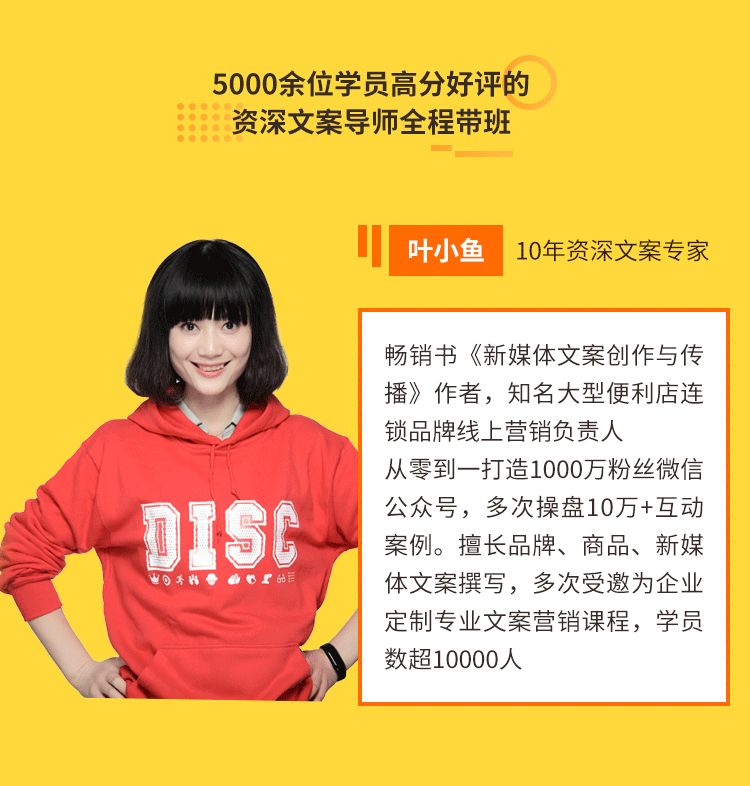 小鱼老师是腾讯课堂&起点学院联合打造的4周文案训练营的带班老师。