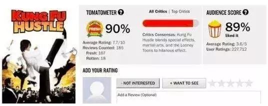 即使是在国外,《功夫》也是被认可的。烂番茄是美国一个主要提供电影相关评论、资讯和新闻的网站,由于数据专业度相对较高,因此网站影片信息具备较强的说服力。下图可见,《功夫》的新鲜度比现在最热的《复仇者联盟:无限战争》还要高,足以证明其在美国的被接受度。