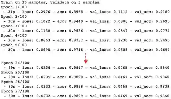 好棒!!!只需使用25个vanilla网络的例子,我们就可以在测试集+验证集上达到98.94%的精度。请注意,由于训练示例的随机性,您可能会得到与我相似的结果(不完全相同但只有很小的精度差异)。