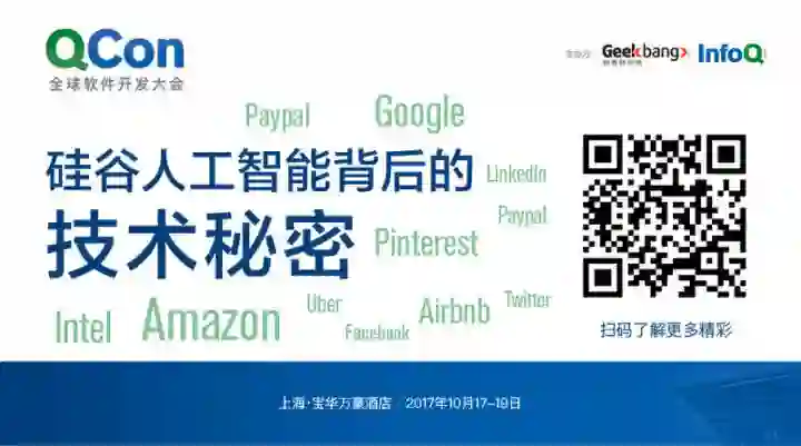 Google 如何用 AI 造聊天机器人?Pinterest 如何用机器学习获得两亿活跃用户?10 月 QCon 上海站,还有来自 Uber、Paypal、LinkedIn、Airbnb 等顶尖技术专家前来分享前沿实践经验。QCon 报名即将结束,识别下方二维码或点击【阅读原文】与 100+ 国内外技术大咖零距离,如有问题欢迎联系票务经理 Hanna ,电话:15110019061,微信:qcon-0410。