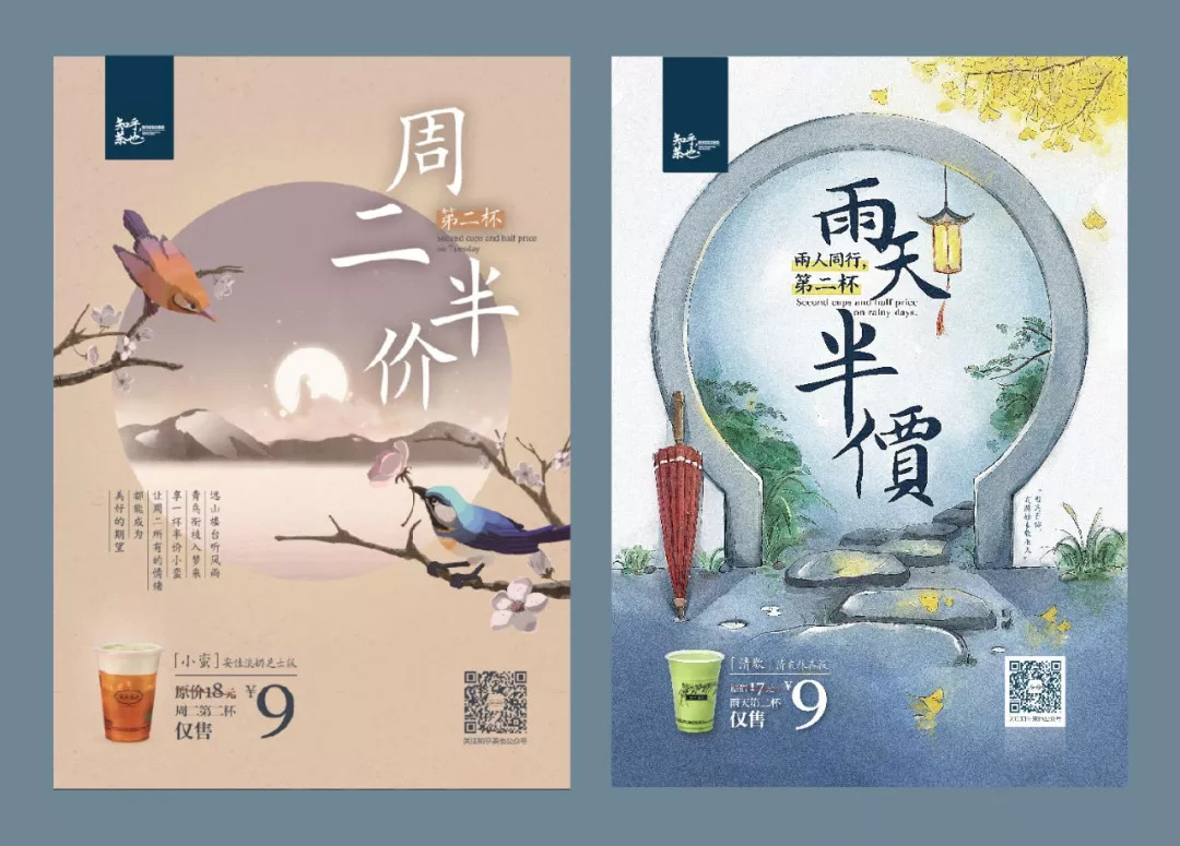 从今天起之后的每个雨天,第二杯清欢清爽版(静冈抹茶搭配纯牛奶)只要9元;每个周二,第二杯小蛮淡奶芝士版(碳焙花香乌龙)也只要9元了。