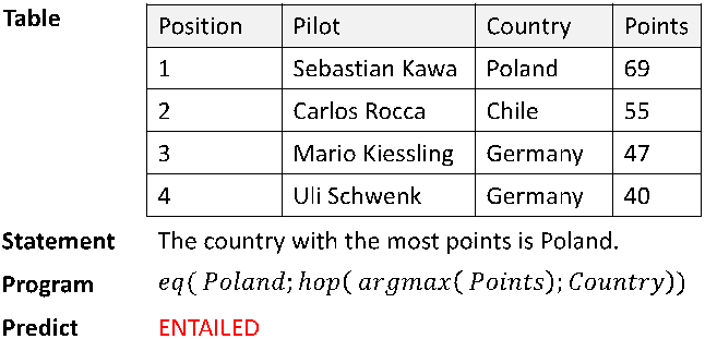 下图的样例分析展现了我们的系统(1)能找到声明和逻辑操作之间的对应关系(比如 “most points” 对 “argmax”)(2)能抽取出正确的程序,并且利用程序的语义组合性对声明的真假性作出正确的预测。
