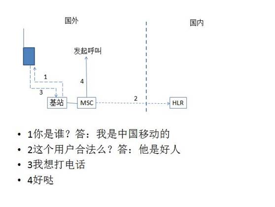第一步说的是用户的位置更新。国际漫游用户首次在拜访地开机时,手机自动向拜访地网络发起位置更新请求,不需要用户有任何动作,漫游客户就对拜访地的运营商say hello啦。