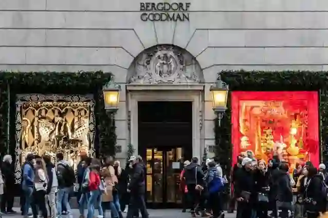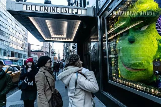 2018年,两家最大的百货公司的主题相当老派。梅西百货(Macy’s)为其旗舰店配备了圣诞老人和北极熊。布鲁明戴尔则展出了一套格林奇(Grinch)主题的布景,完美结合了这位暴躁绿毛怪在电影院中的最新形象。与此同时,萨克斯第五大道(Saks Fifth Avenue)采用了“梦幻剧场”的主题,伯格多夫·古德曼(Bergdorf Goodman)则创造了一个糖果仙境。即将歇业的亨利·本德尔(Henri Bendel)为这座城市献上了一座摩天大楼。纽约巴尼百货公司(Barneys New York)追寻更加慈善博爱的精神,加入到了“拯救儿童组织”(Save the Children)的“改变”(Make Change)慈善活动中,其橱窗展包括贴在白板上的四万枚1美分硬币。