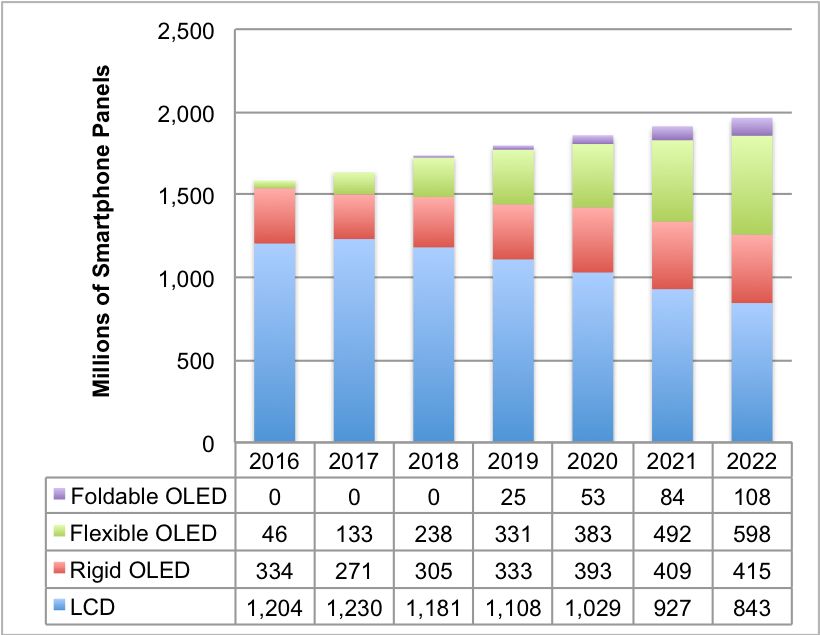 图|硬式、可挠式、可折叠式面板出货预估(资料来源:DSCC)