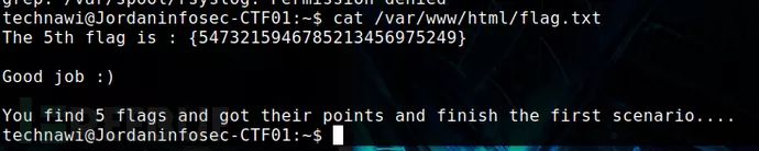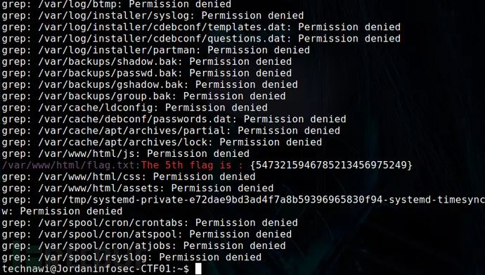 grep -r “The 5th flag is :” /var/ (此次关键字是结合前面几个flag规律)