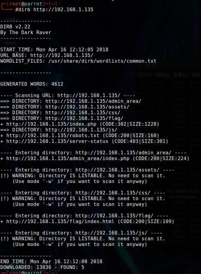 我们打开http://192.168.1.135 使用御剑等神器跑跑目录,本菜使用dirb神器