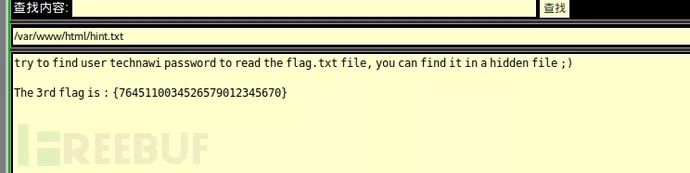 本次使用的是PHP大马,登陆shell在网站根目录发现 hint.txt ,访问得到第3个flag并得到提示信息: