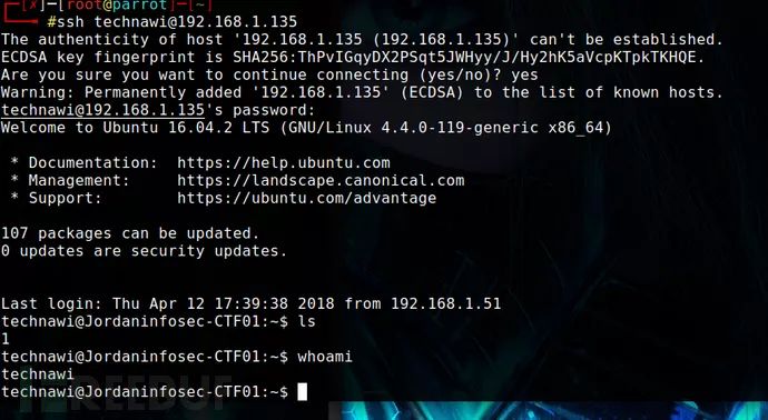 前面我们看到该靶机开启了SSH服务,我们直接使用该账号密码登陆
