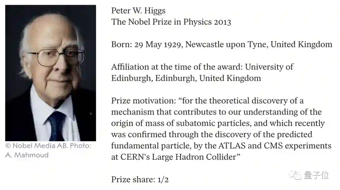 2013年,诺奖官方对希格斯给出的颁奖理由是: