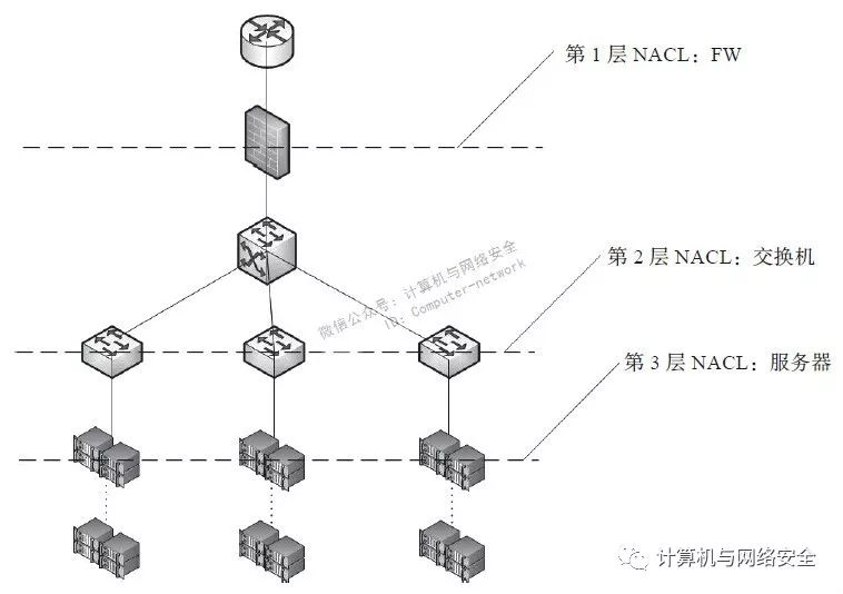 除了网关级的访问控制以外,还有机柜级的NACL和系统级的NACL,机柜的上联交换机可以做一些简单的NACL,其细粒度以不影响正常的运维便利为准。