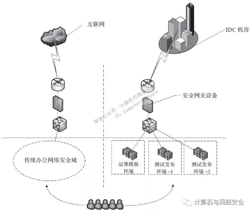 ● 远程访问(运维连接)通过VPN或专线连接到机房生产网络。