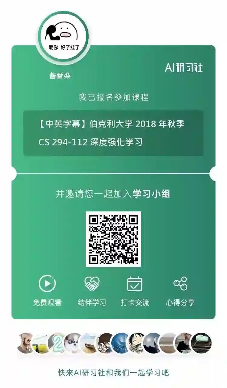 AI 研习社获得官方授权,汉化翻译伯克利大学 CS 294-112 《深度强化学习》,今天更新至第二讲~